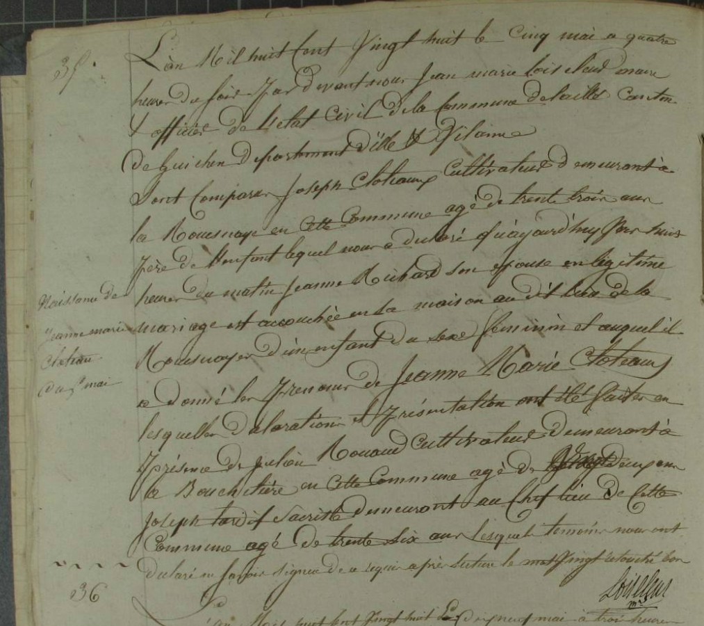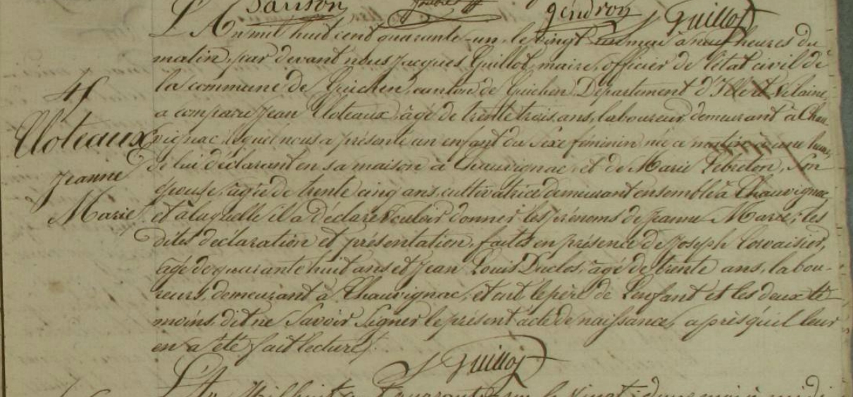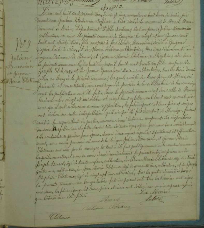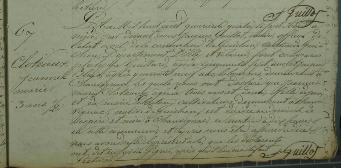 Présents : CLOTTEAU Jean grand-père, CLOTTEAU JeanDécès : 12 mai 1869 à Guignen 35580 Lalleuc