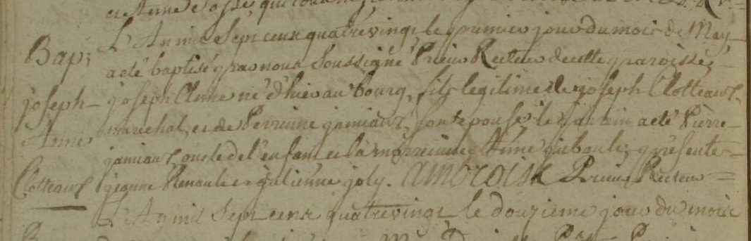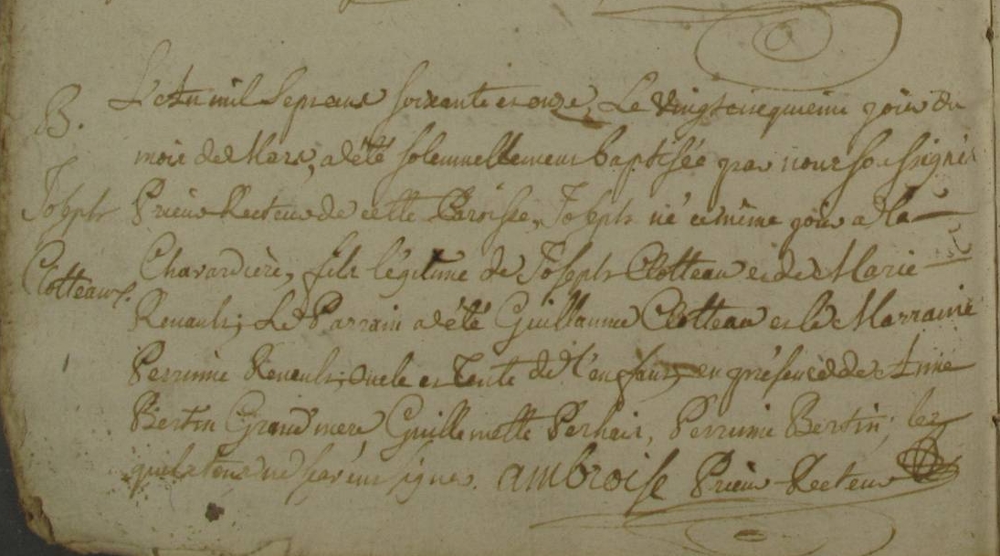 Témoin :CLOTEAUX Guillaume ( 1746 - > 1771 )