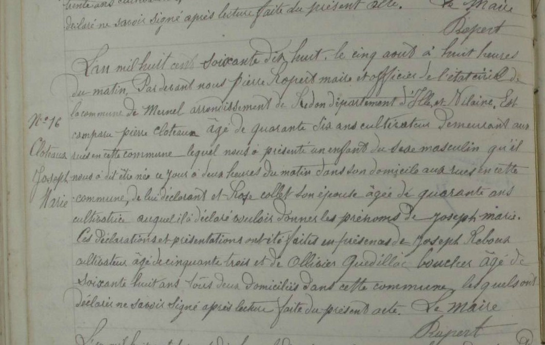 Présents : CLOTEAUX Joseph, 29 ans, fils