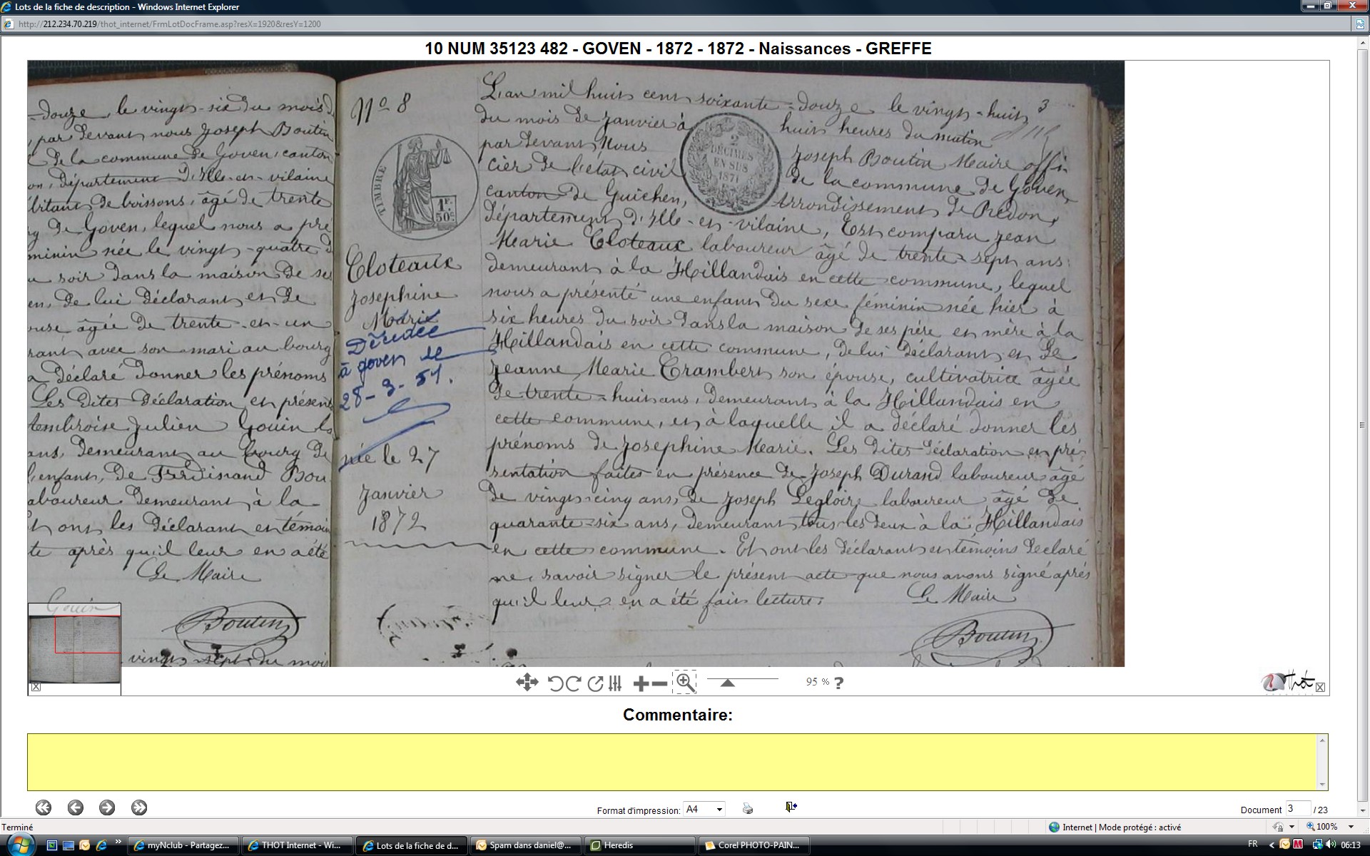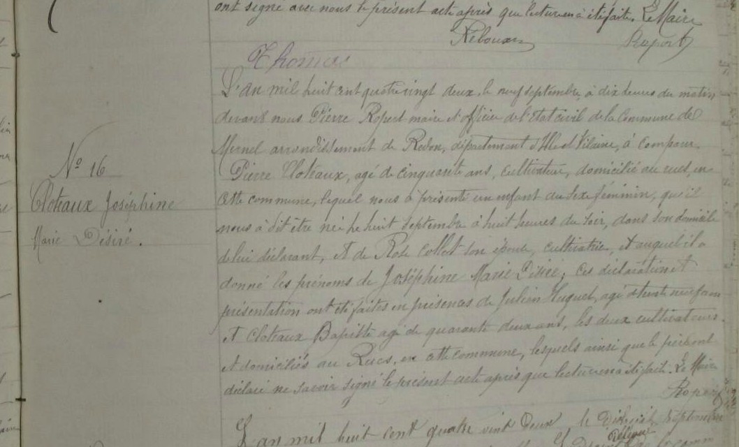 Joséphine est-il un autre prénom de CLOTEAUX Julienne Françoise X SALMON Julien marié en 1872 à Maxent également!