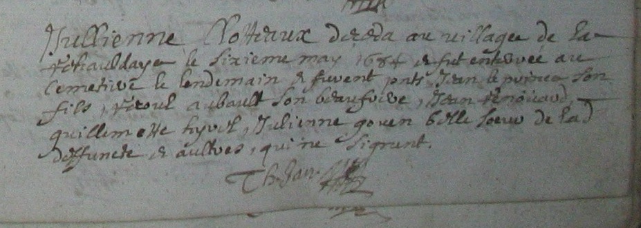 elle a un frère JeanDécès : 6 mai 1684 à Goven 35580 La Rihauldaye