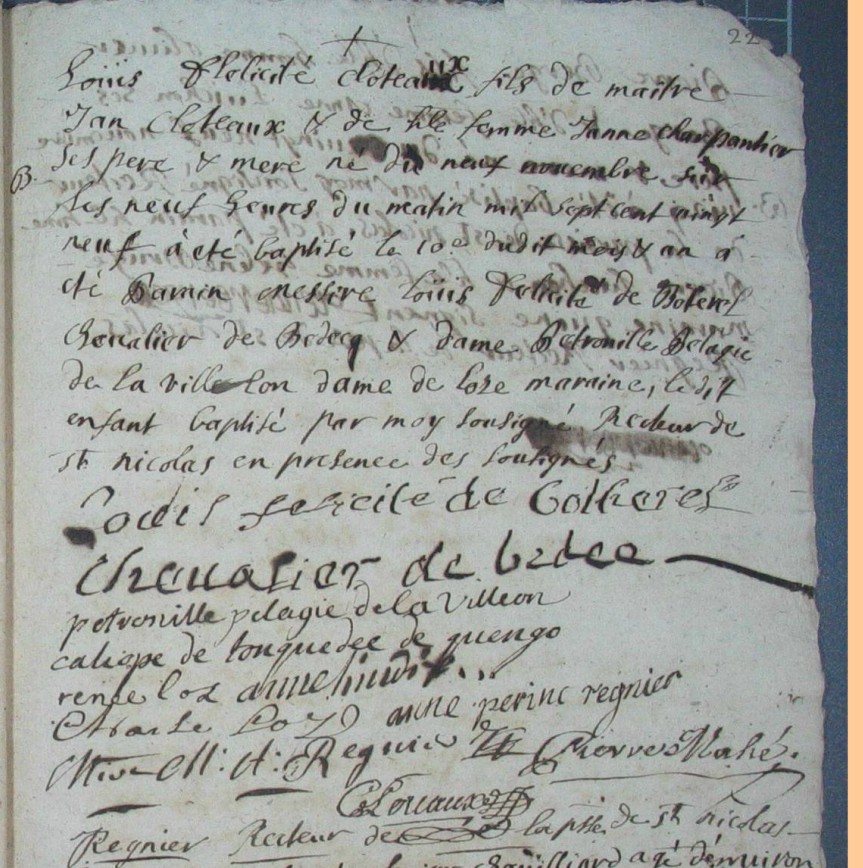 Enfants : CLOTEAUX Félicité René Luc ( 1764 - 1764 )