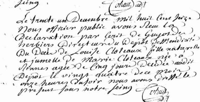 Mère : CLOTEAUX Marie ( 1784 - > 1816 )