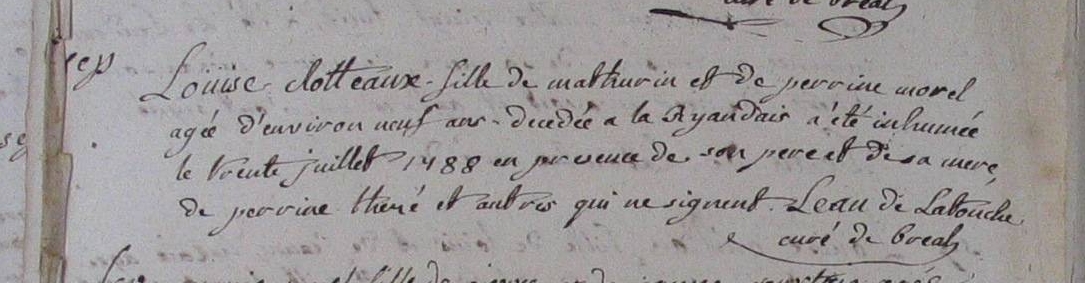 Naissance : vers 1704 Décès : 26 février 1719 à Guignen 35580 Lauriais