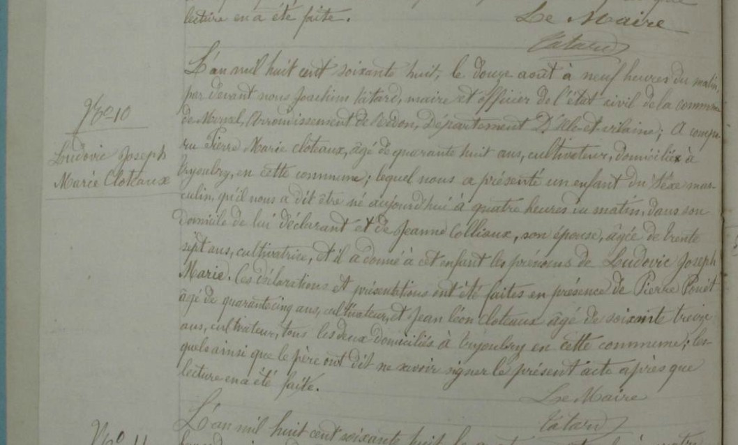 Naissance : 12 août 1868 à Mernel 35330