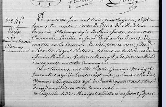 Mère : MANIGOT Marie Madelaine Victoire ( 1798 - > 1847 )