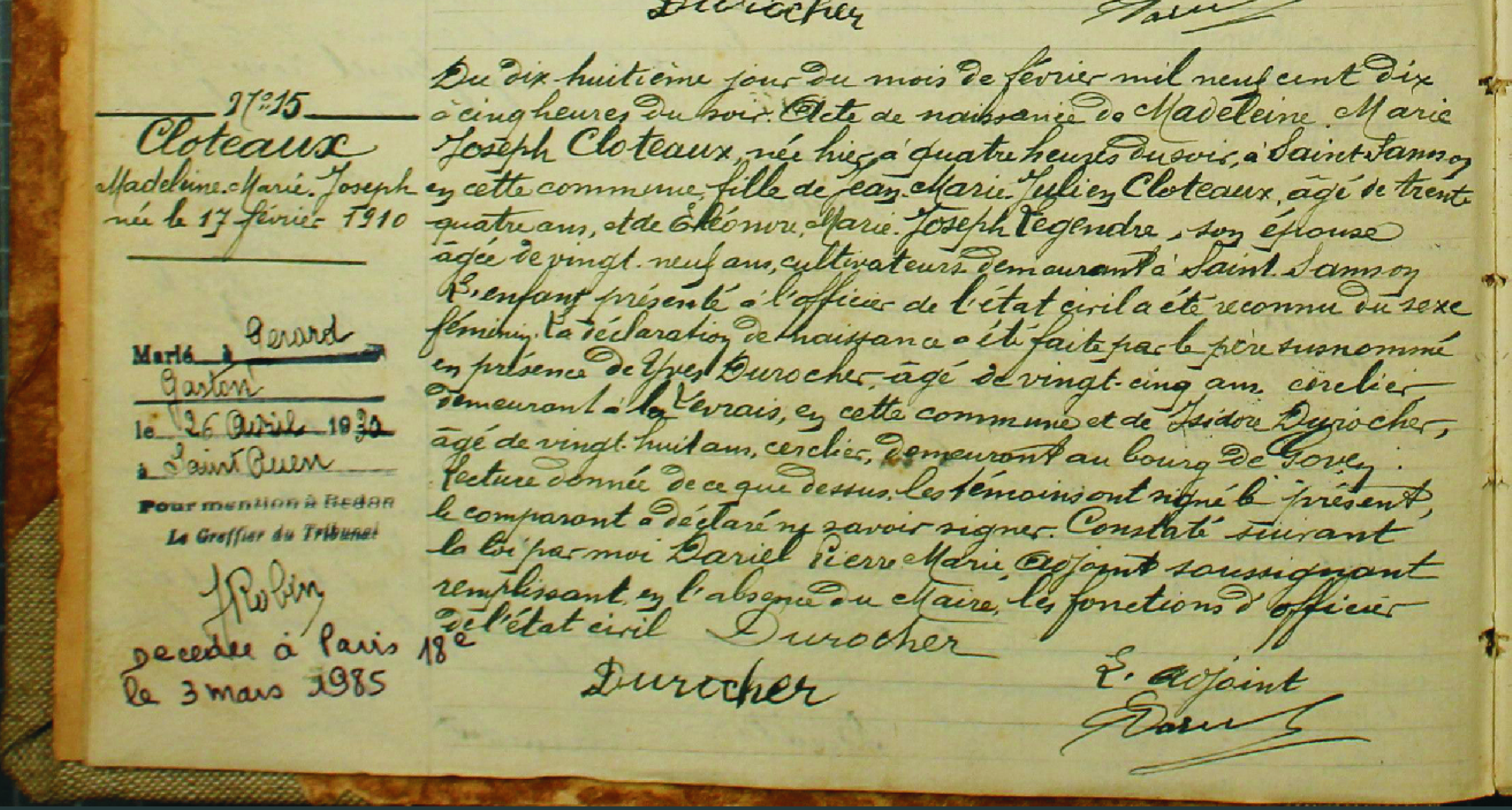 Père : CLOTEAU Jean-Marie Julien ( 1875 - 1923 )