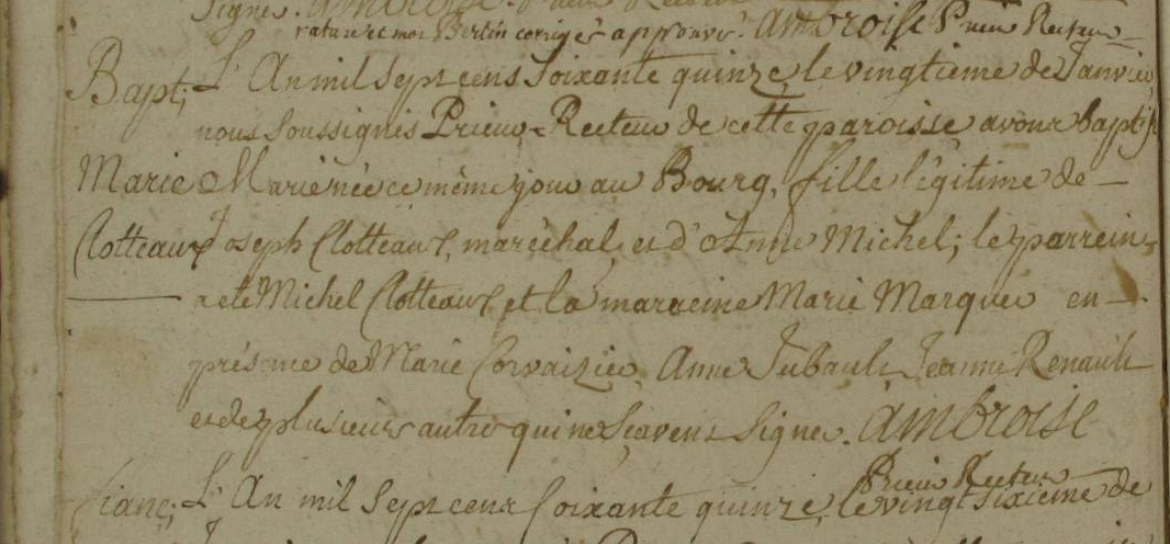 Témoins :CLOTEAUX Marie ( < 1754 - > 1769 )