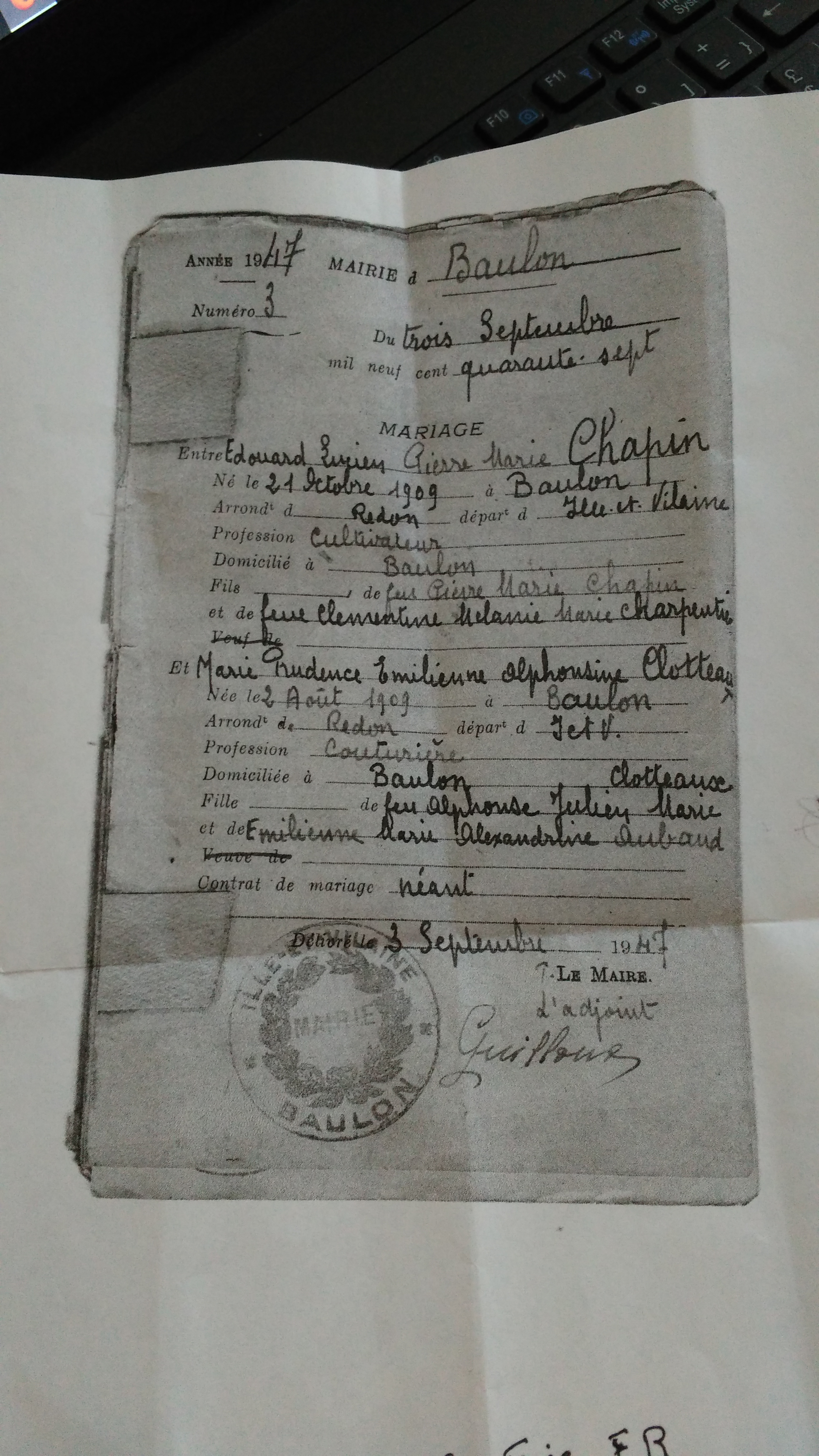 Union : CHAPIN Edouard Lucien Pierre Marie ( 1909 - ? )