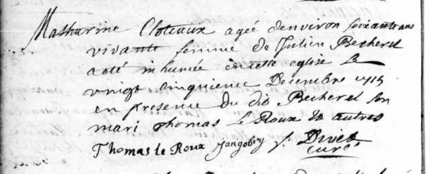 11 ans pour les bans avec Julien Becherel!!!Décès : 25 décembre 1715 à Rennes 35000 Inhumation : 25 décembre 1715 à Rennes 35000 Eglise Toussaint