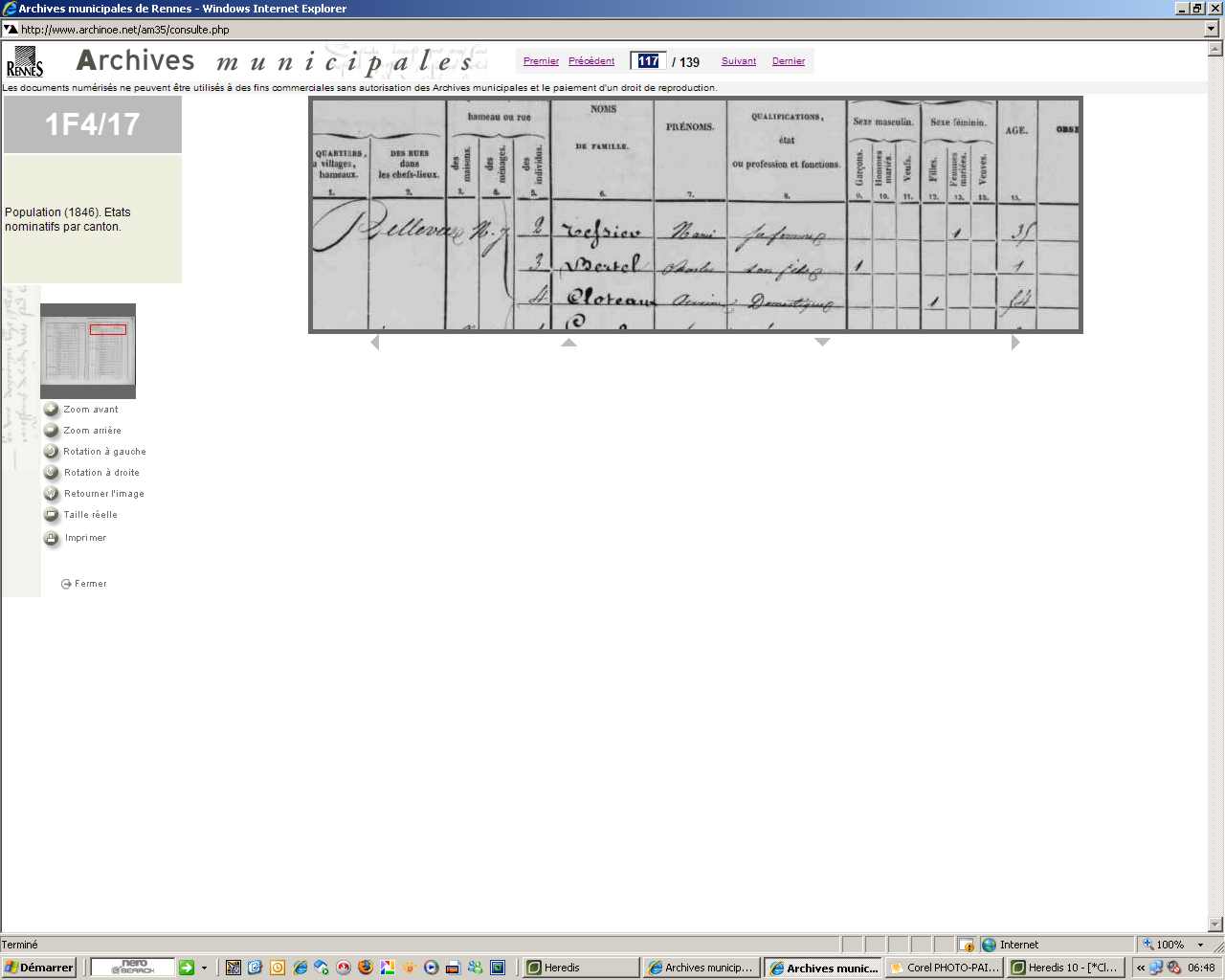 Naissance : calculée 1792 Domicile : 1846 à Rennes 35000 Rue Bellevue