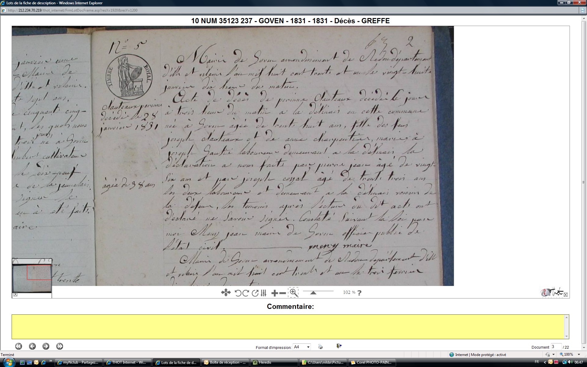 Nom et prénom de la mère Guillaume + 27/05/1830 MENANT