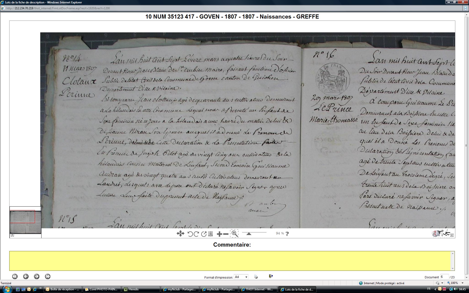 Naissance : 11 mars 1807 à Goven 35580 Hillandais