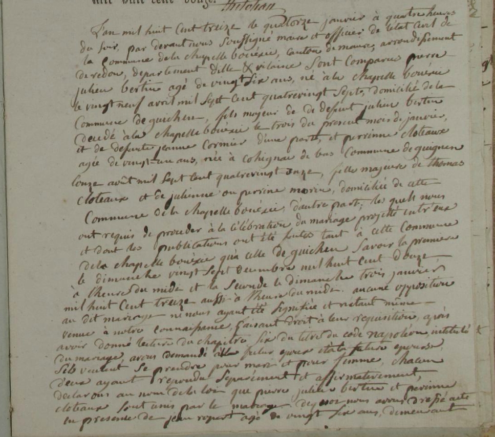 Mariage : 14 janvier 1813 à La Chapelle-Bouëxic 35330