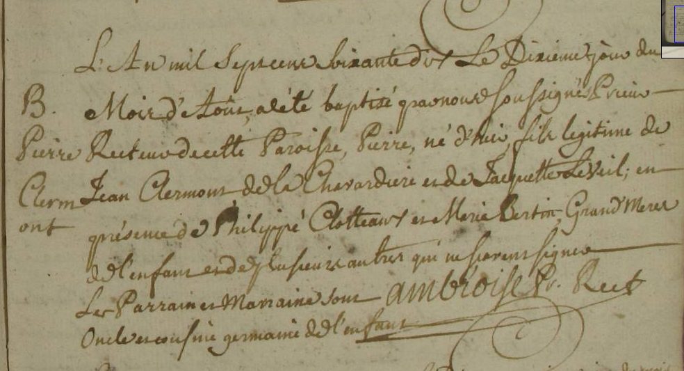 peut-être marraine de Pierre CLOTEAU 14/10/1761