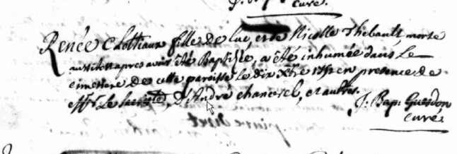 Témoin du baptême Cloteaux Marie Anne en 1729 à Pipriac.