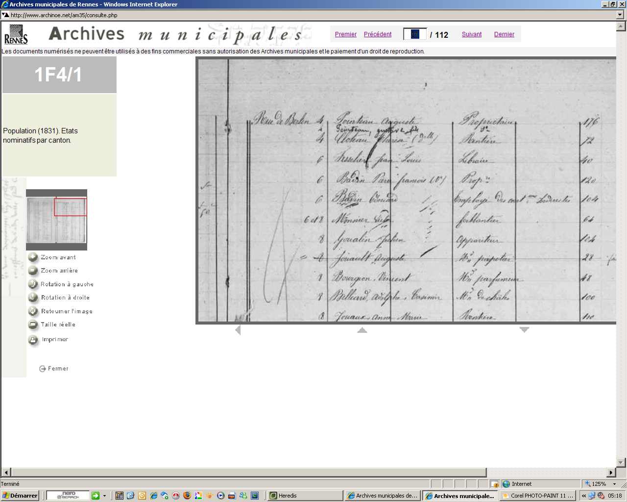 Naissance : calculée 1787 Domicile : 1831 à Rennes 35000 4 rue de Bertin