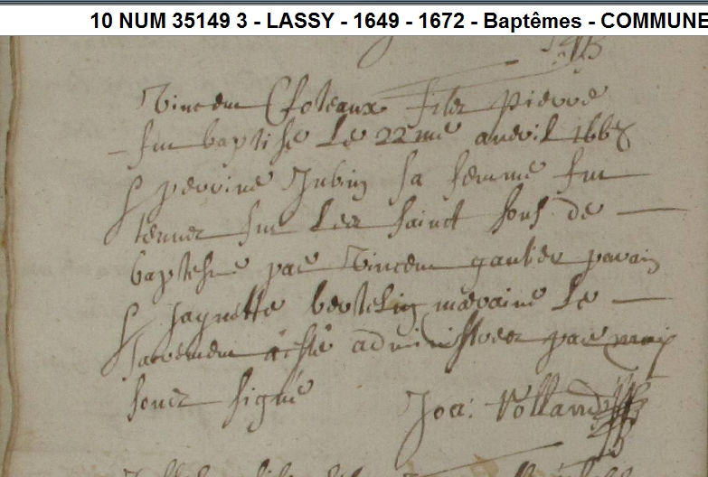 Mère : GRUEL Jeanne ( < 1631 - > 1660 )