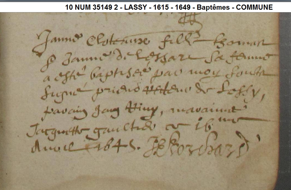 Père : CLOTIAULX Julien ( < 1620 - > 1645 )