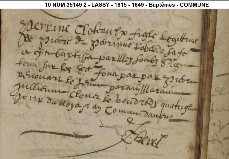 Témoins :CLOTEAUX Julien ( < 1606 - > 1671 )