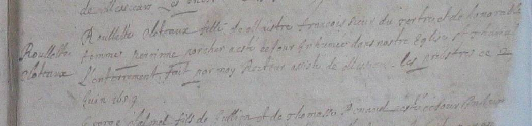 Autres enfants : CLOTIAULX Perrine ( ~ 1630 - > 1683 )