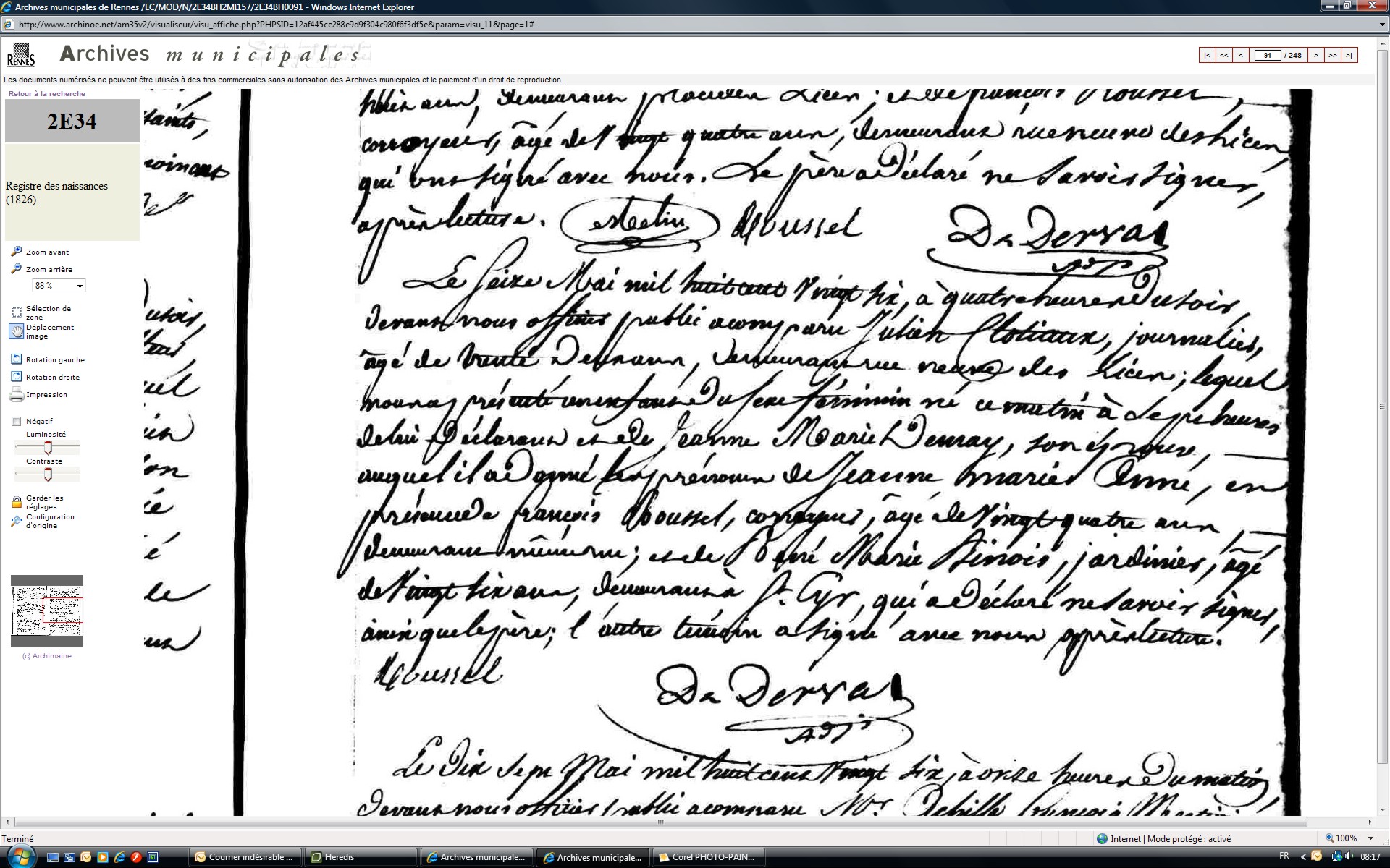 Naissance : 16 mai 1826 à Rennes 35000 Rue Neuve des Lices