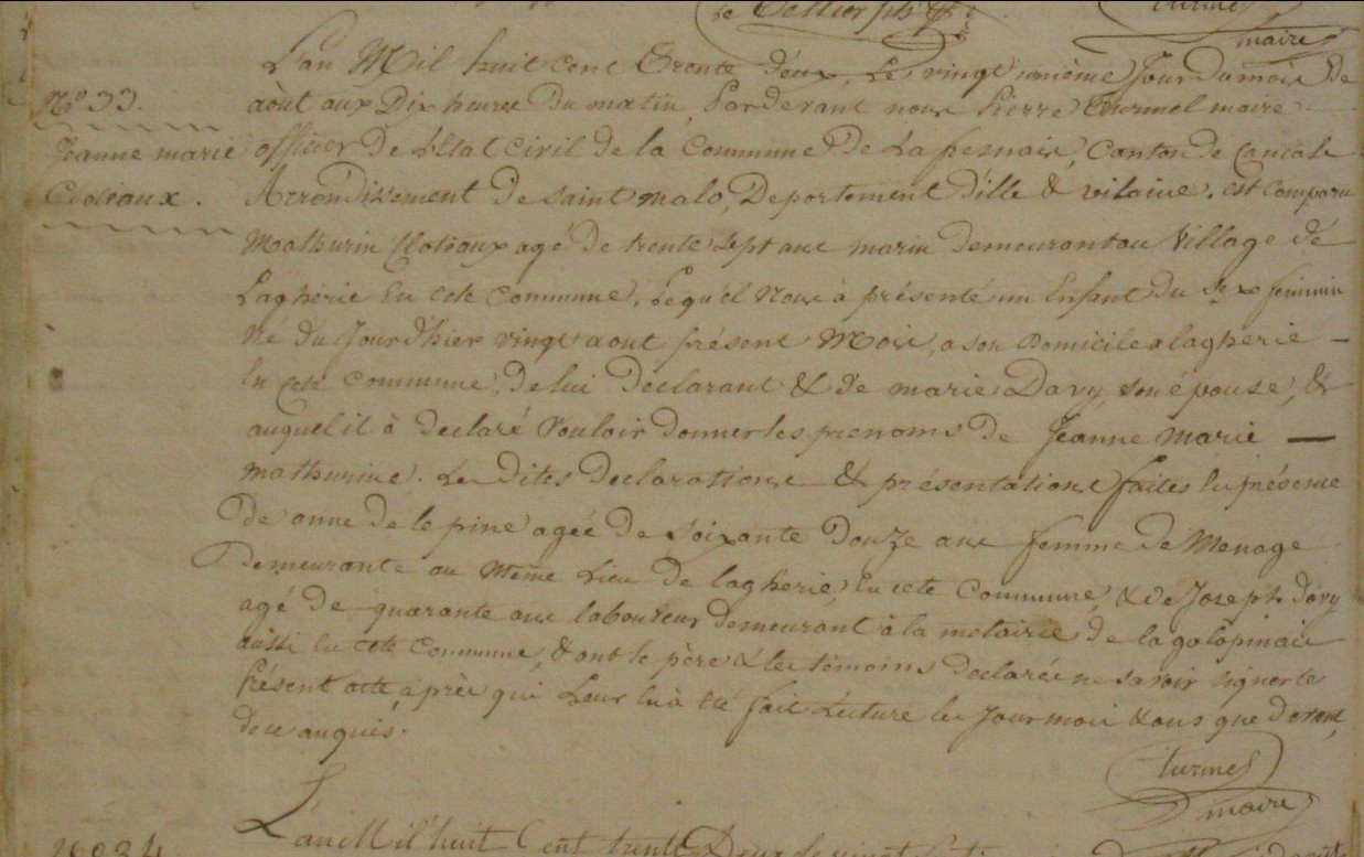 Témoins :CLOTEAUX Julien ( 1795 - 1871 )