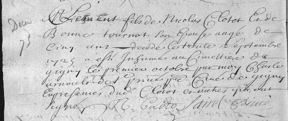 Naissance : 12 avril 1721 à Saint-Dizier 52100 Décès : 30 septembre 1725 à Saint-Dizier 52100 paroisse de Gigny