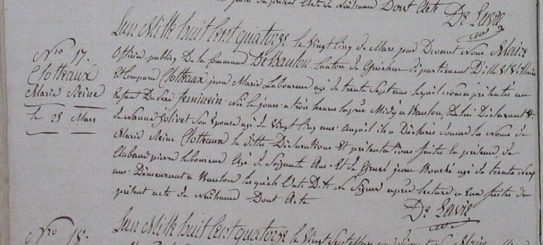 Père : CLOTEAU Jean Baptiste ( < 1756 - <> 1792 & 1819 )