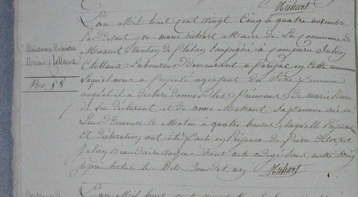 Naissance : entre 1758 et 1824 à Baulon 35580
