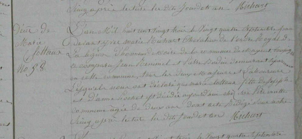 Père : CLOTTAUX Joseph ( < 1803 - > 1823 )