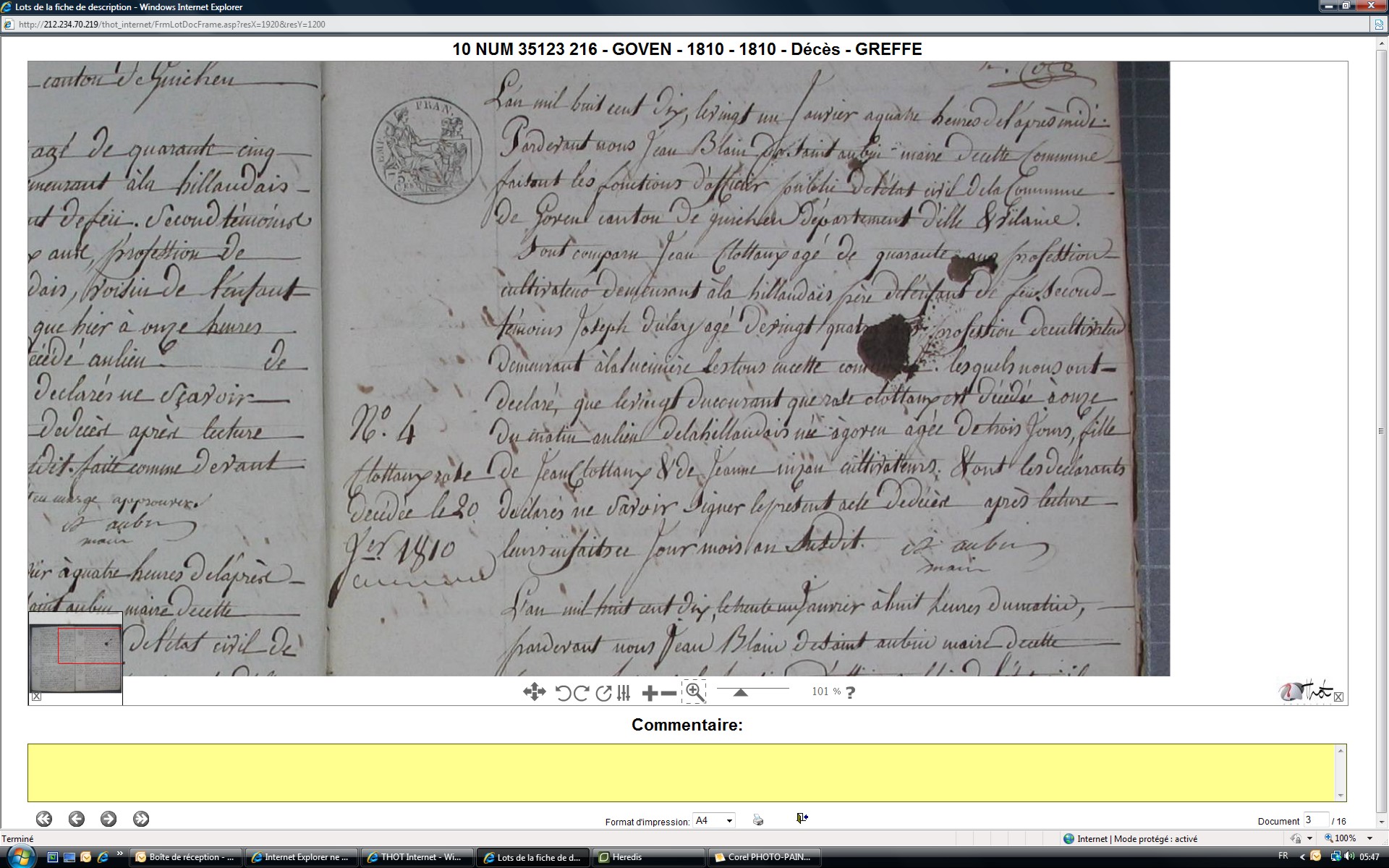 Naissance : 18 janvier 1810 à Goven 35580 Hillandais