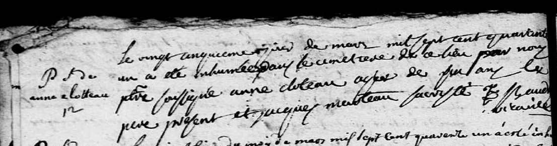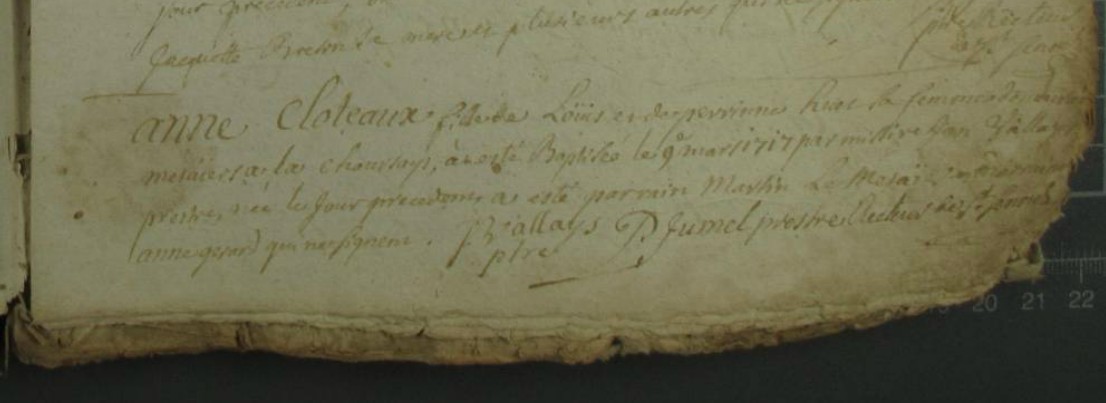 Père : CLOTTEAU Urbain ( < 1680 - <> 1731 & 1733 )