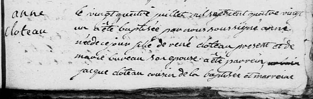 Père : CLOTTEAU Jean ( 1723 - 1761 )