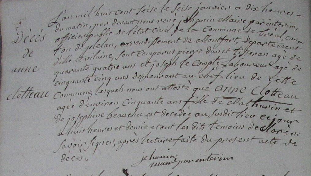 Décès : 16 janvier 1816 à Bréal-Sous-Montfort 35310