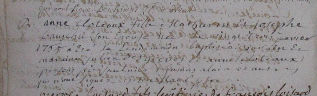 Père : CLOTEAU René ( 1695 - <> 1730 & 1764 )