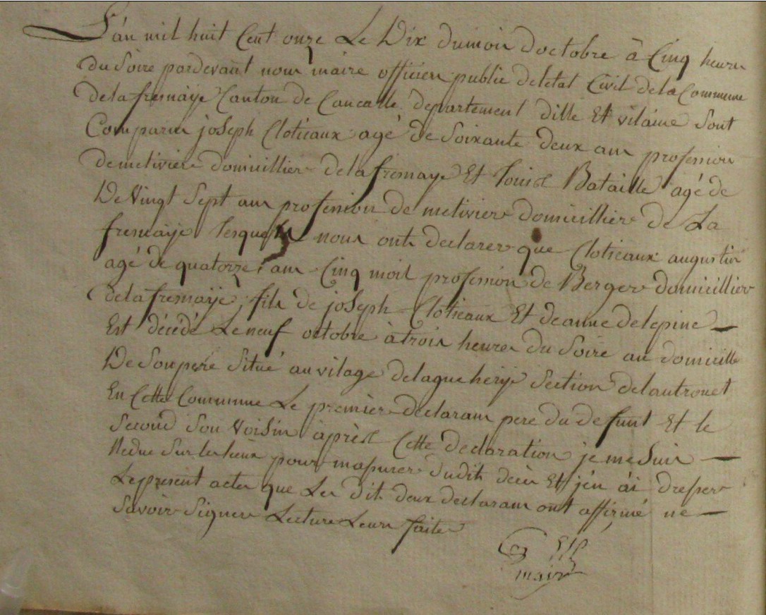 Père : CLOTIAUX Joseph Jean ( 1750 - 1826 )