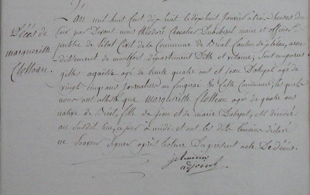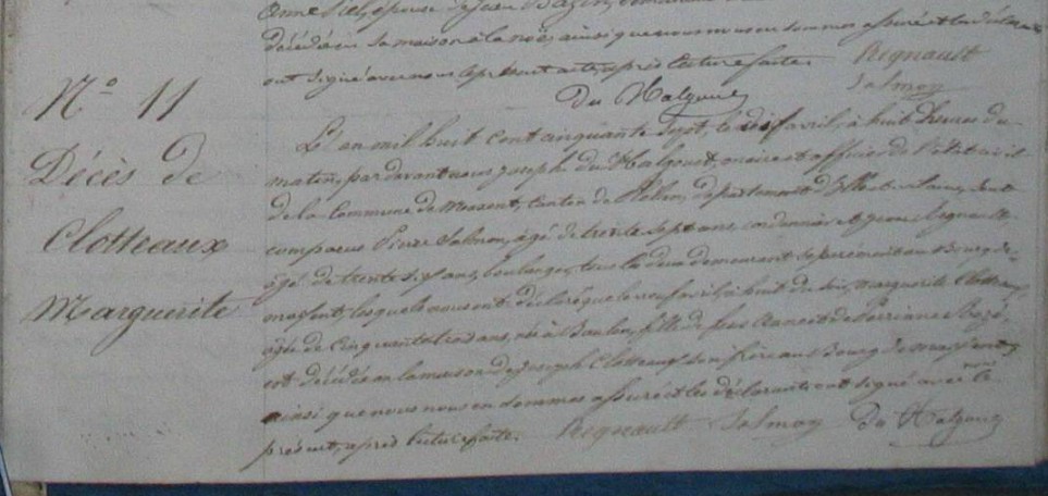 OU CLOTEAUX Margueritte à son mariageDécès : 12 prairial an XI à Baulon 35580