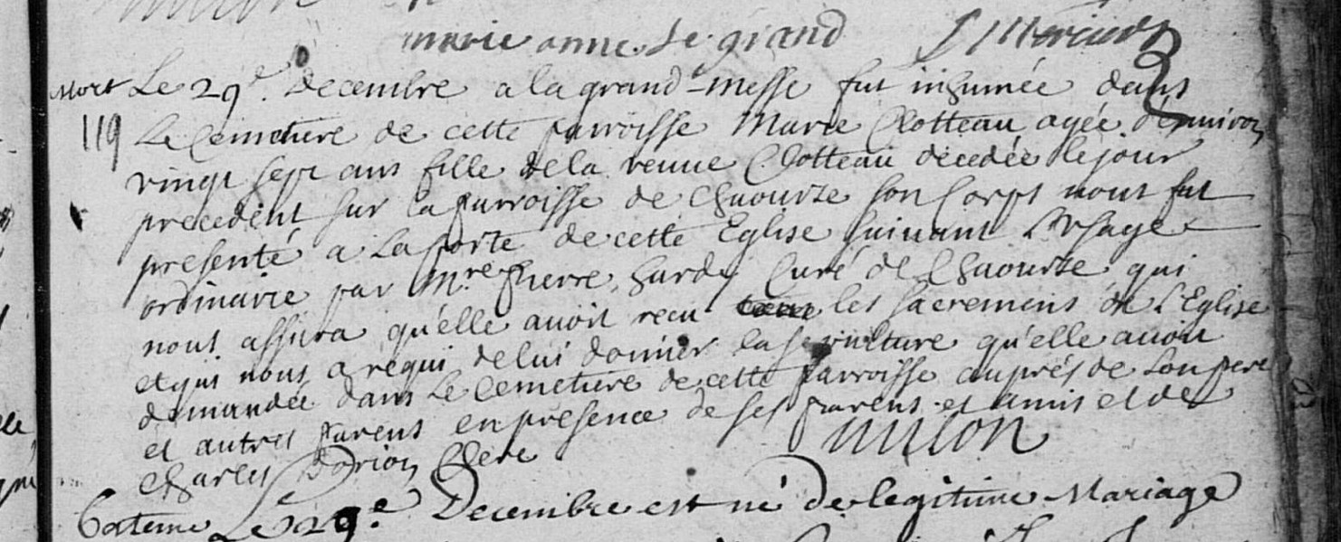 Père : CLOTTEAU Urbain Urban ( 1661 - 1715 )