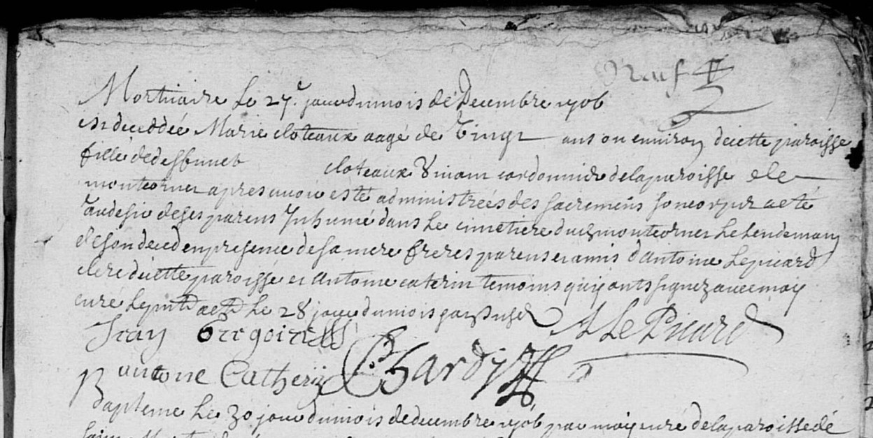 Mère : BOUGUIE Marie ( < 1672 - <> 1712 & 1730 )