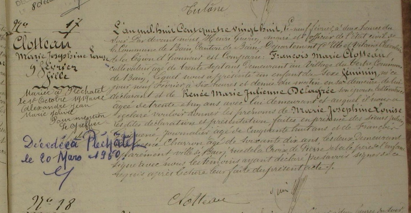 Père : CLOTTEAU Jean Marie ( 1846 - > 1892 )