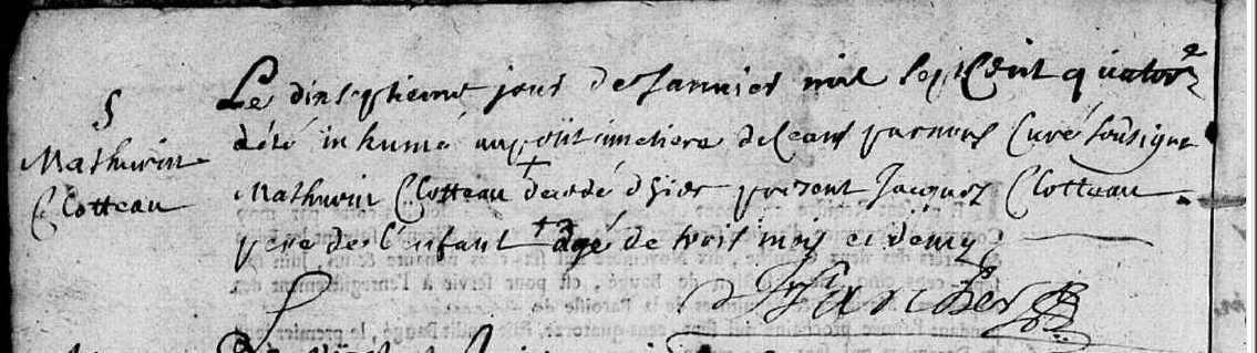 Père : CLOTTEAU Jacques (Claude) ( < 1688 - > 1716 )