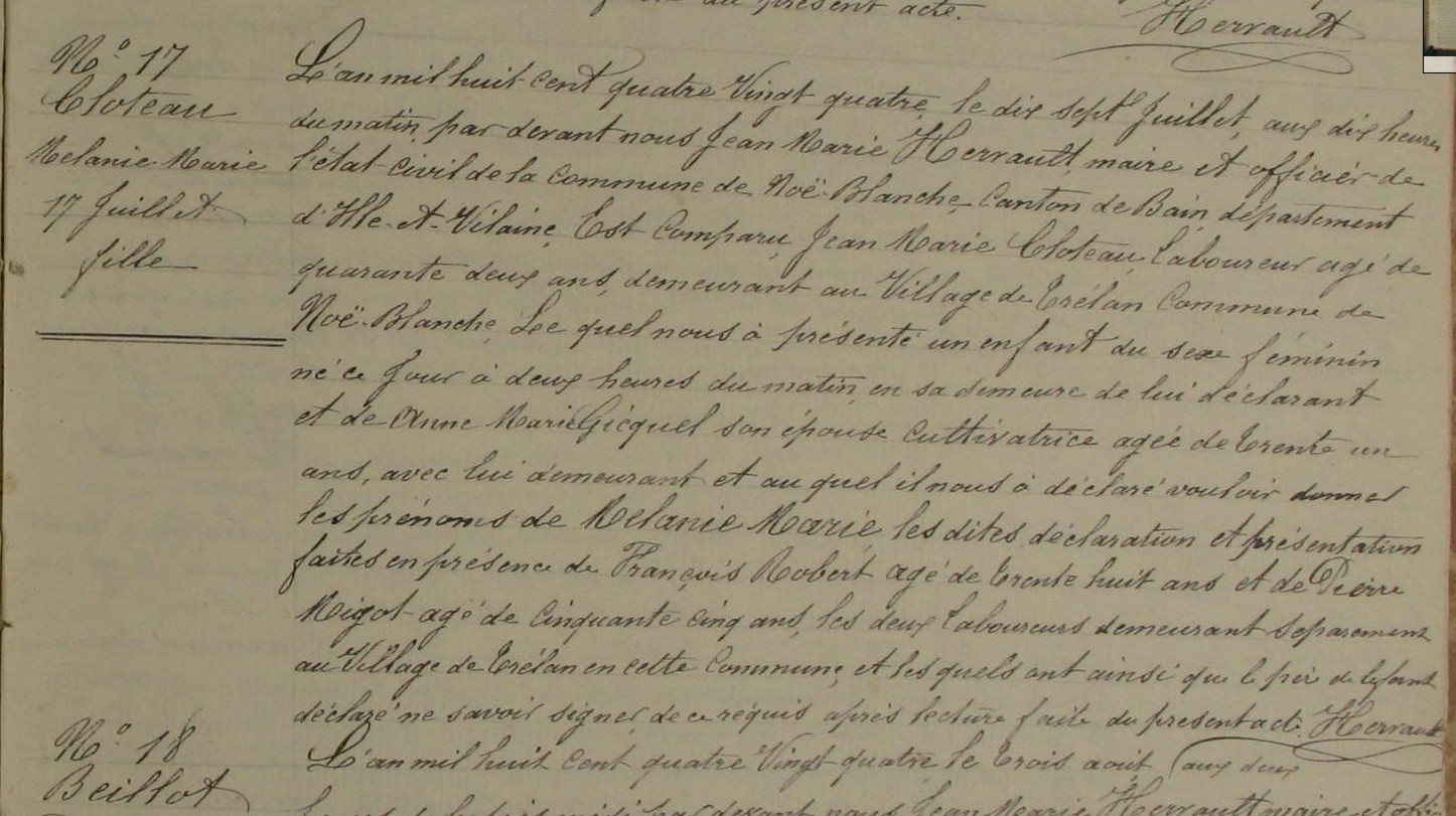Naissance : 17 juillet 1884 à La Noë-Blanche 35470