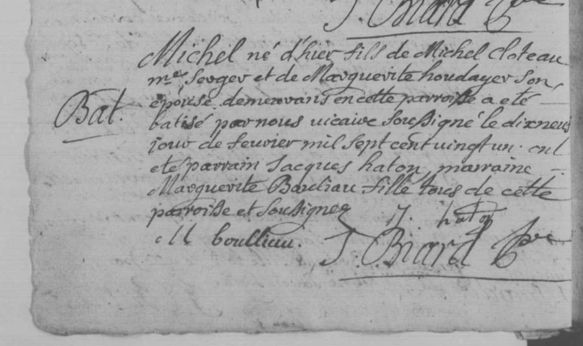 Père : CLOTEAU Michel ( 1687 - 1726 )