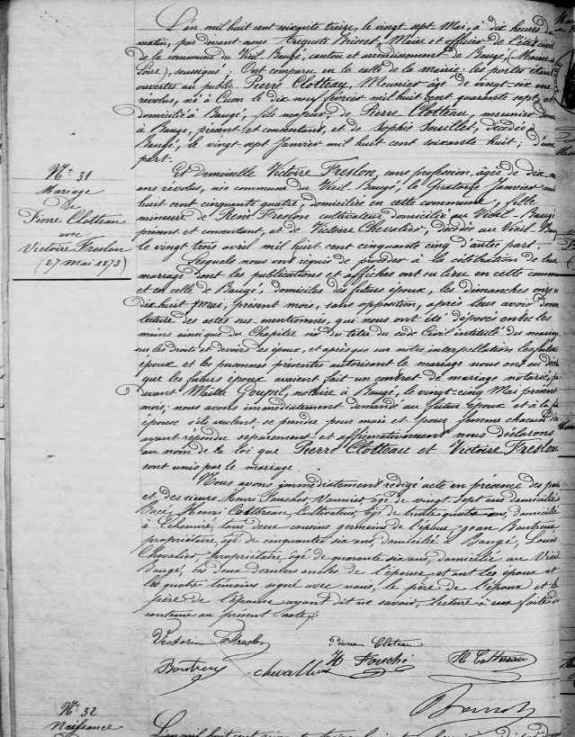 Mariage : 27 mai 1873 à Le Vieil Beaugé 49372