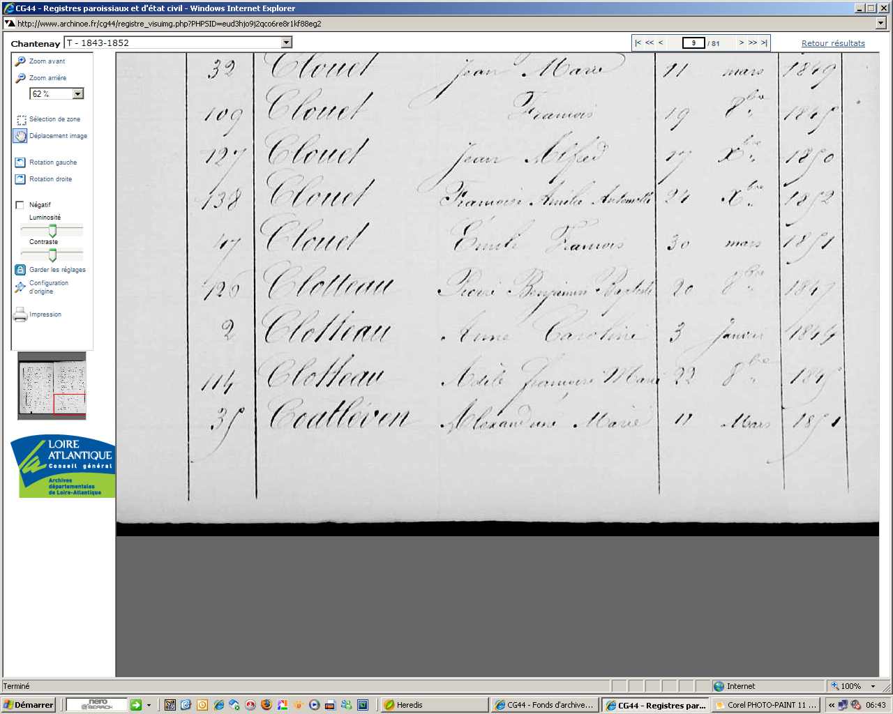 Père : CLOTTEAU Pierre ( 1806 - > 1876 )