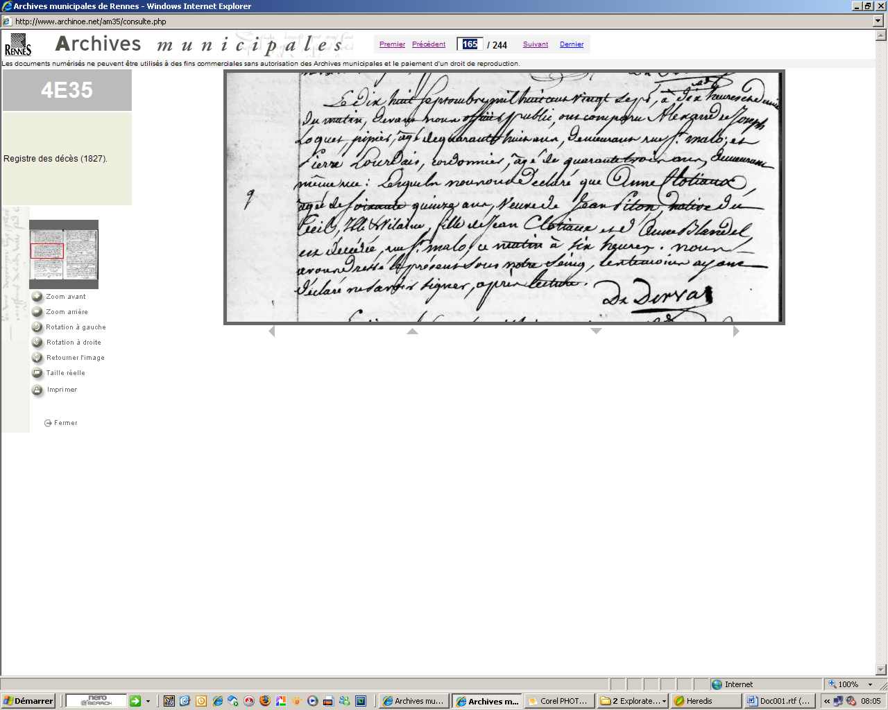 Marraine deLE MARIE MariePhoto : 35127_AC_BMS_1776-1792_0372Date de l'acte : 15/03/1788Prénom du père : Jean, ans Nom et prénom de la mère Clotteaux Renée, ans Domicile des parents : Rue GicquelNom et prénom du parrain Le Marie Joseph Nom et prénom de la marraine Clotteaux AnneOfficiant : Gaultier J. - peut-être la marraine de :MICHEL AnnePhoto : 35127_AC_BMS_1776-1792_0295Date de l'acte : 07/02/1785Prénom du père : Pierre, ans Nom et prénom de la mère Cheminel Gilette, ans Domicile des parents : CrucheNom et prénom du parrain Piel Guillaume Nom et prénom de la marraine Clotteaux AnneOfficiant : Tigeot - marraine deBELLAMY JullienPhoto : 35127_AC_BMS_1776-1792_0249Date de l'acte : 29/03/1783Prénom du père : Jan, ans Nom et prénom de la mère Clotteaux Thomasse, ans Domicile des parents : TreyerNom et prénom du parrain Clotteaux Félix Jullien Nom et prénom de la marraine Clotteaux AnneOfficiant : Poulain J.Décès : après 1790