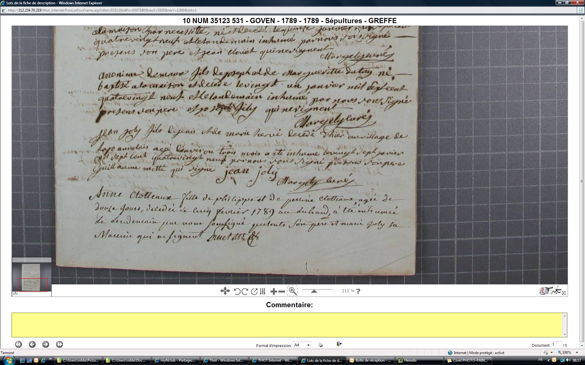 Nom et prénom de la marraine Clotteaux AnneDécès : après 1779