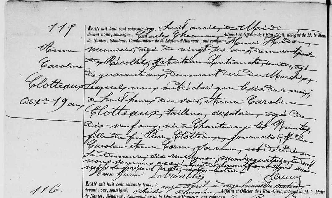 Décès : 6 avril 1863 à Nantes 44000