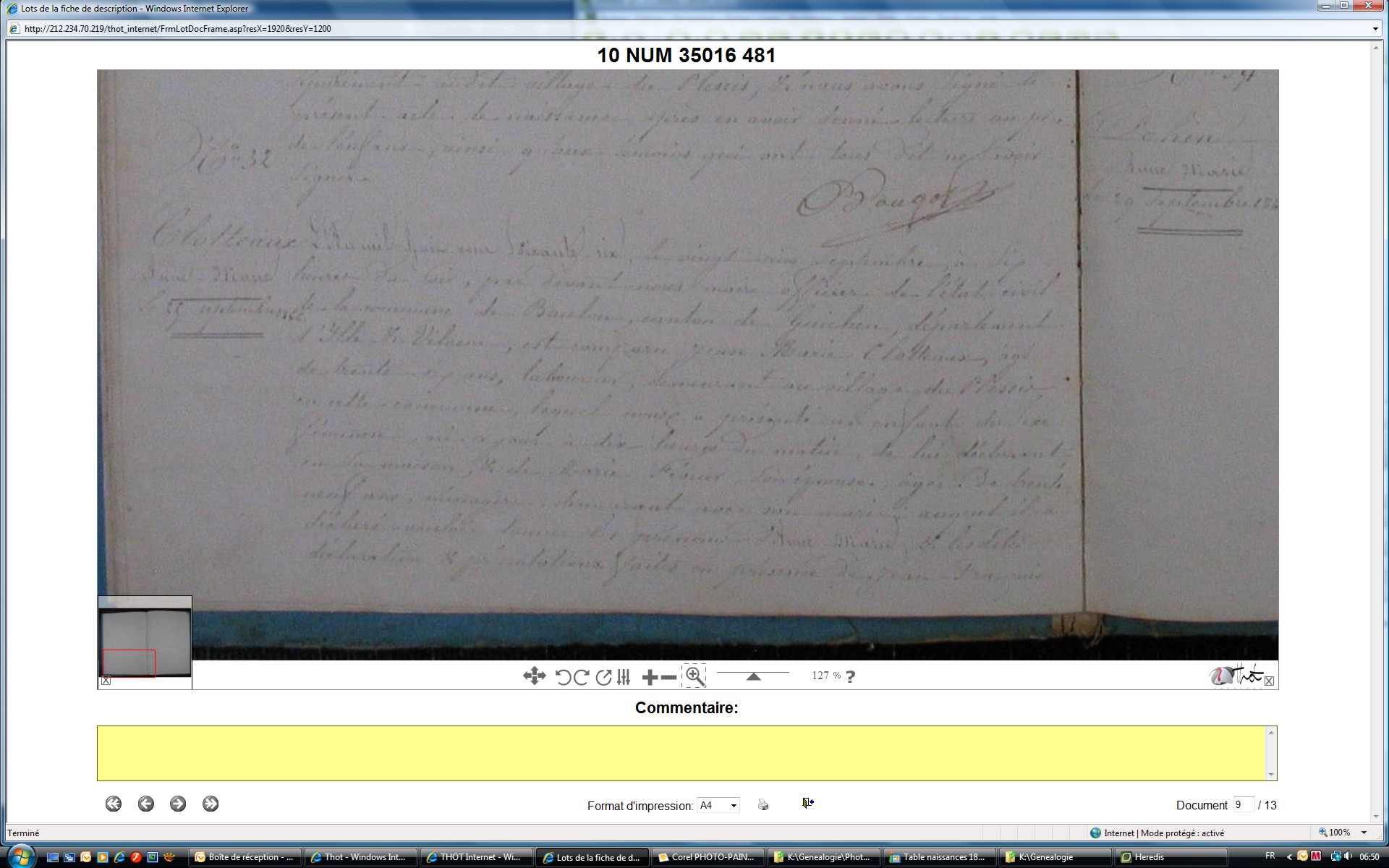 Nom et prénom de la marraine Cloteau Anne